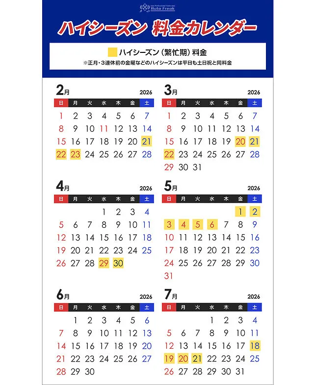 ※車体の形状・車両総重量・年式で料金は変動する事があります。